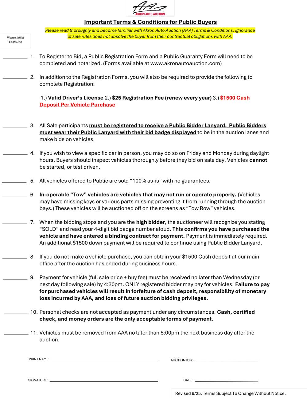 Never been to our auction? Interested in signing up? Want to learn more about this week's cars? Regardless of your question, help is just one click away.