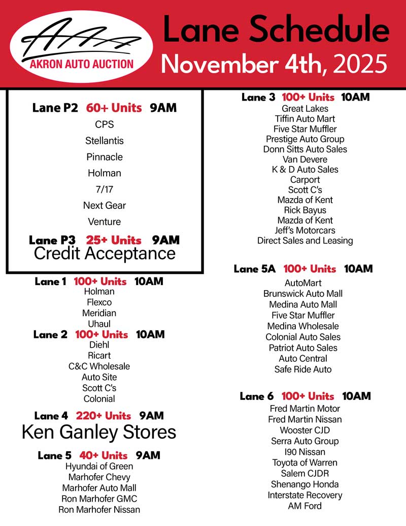 Find out where dealers are running their cars this week at Akron Auto Auction